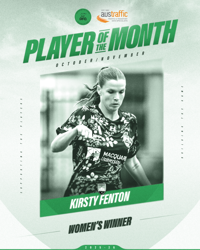 Following on from last season, Lolley and Fenton will receive a specially designed ball from PFA partners at Park SCC as a result of winning the Player of the Month. Both players will be able to choose to donate 10 balls to one of three charities – Football Empowerment, KitAid Australia and Football United.