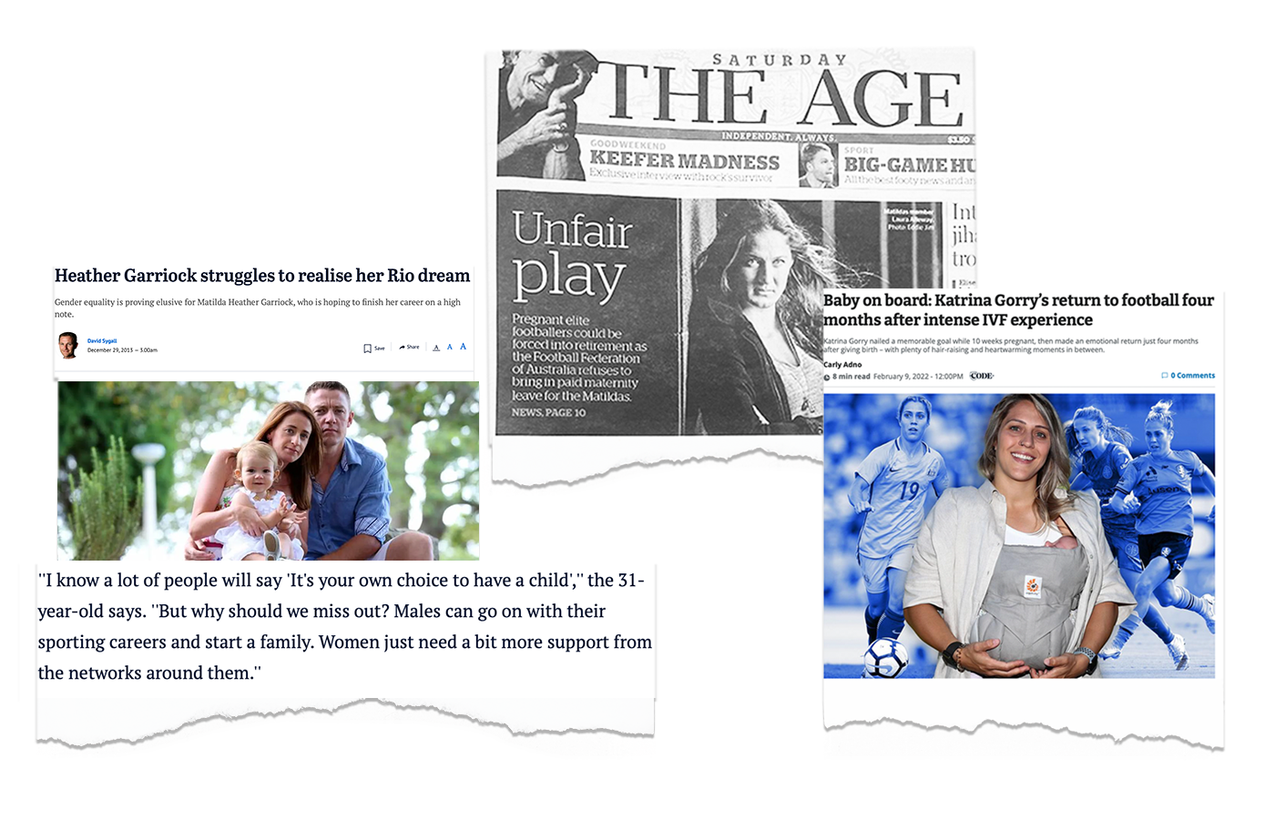In 2013, Melissa Barbieri lost her Matildas contract when she decided to have a child. She was forced to sell her precious football memorabilia and rely on charity from male players to fund her playing return via the W-League.