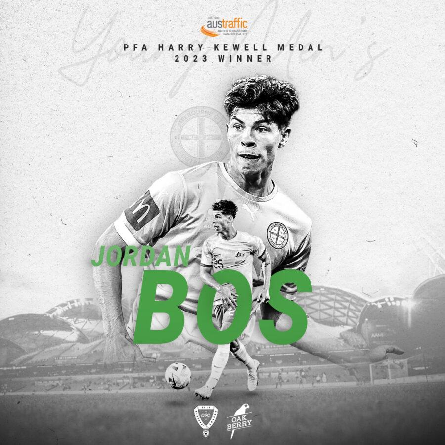 Bos joins the likes of Socceroos captain Mat Ryan, Jamie Maclaren and Robbie Kruse in being awarded the PFA Austraffic Harry Kewell Medal, following a standout campaign with Melbourne City.